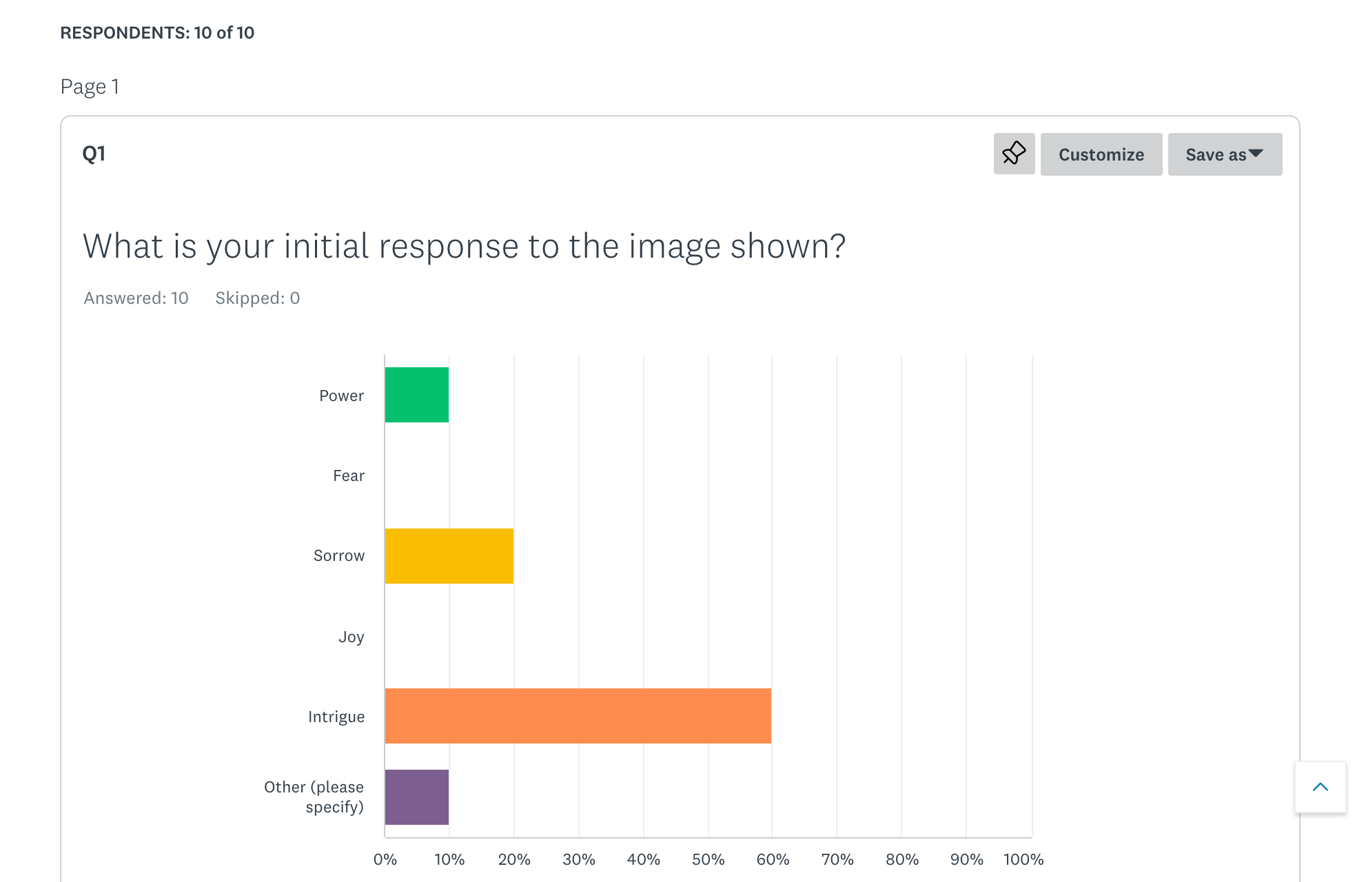 What I find interesting is that so far, the results show that people who never visited art galleries were all intrigued by the image – whereas those who sometimes or often visited galleries, had more nuanced responses of power, sorrow and an optional answer of submission.