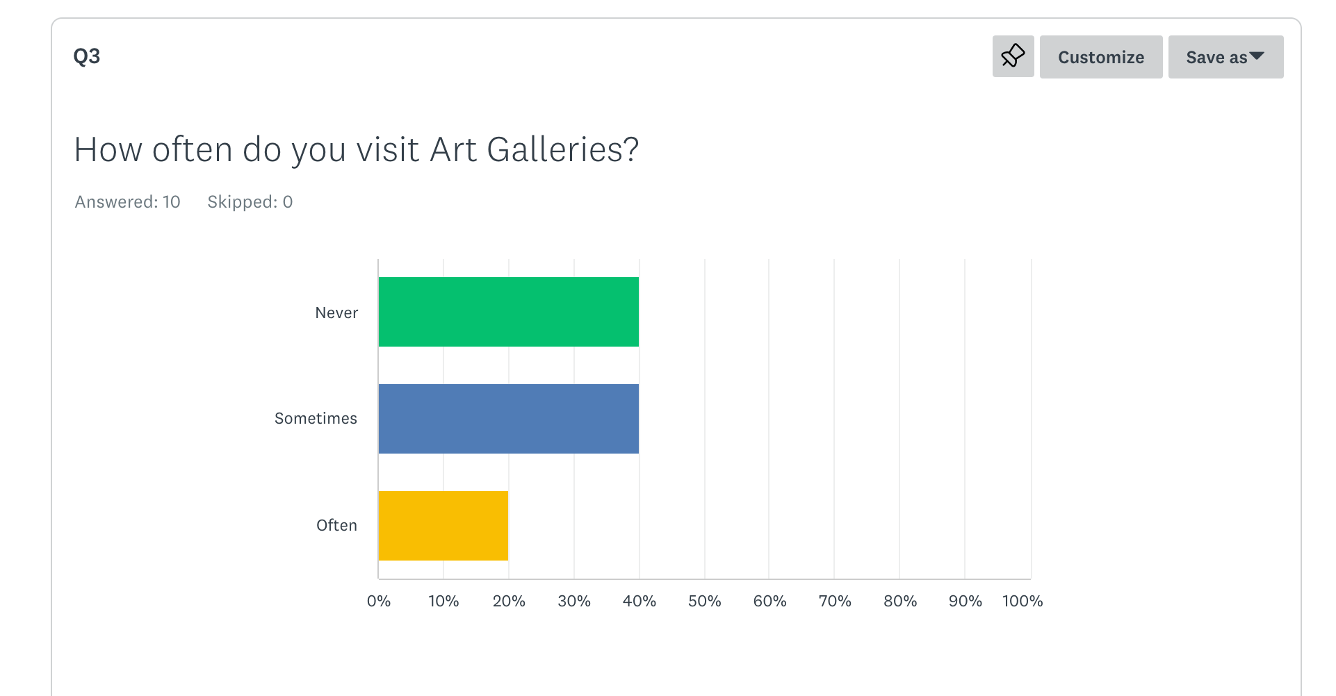 There have been approximately 10 results back so far, but I will keep the survey open for a while longer. It is difficult to guauge a true and comprehensive picture, partly as there are so few participants, and also the participant group are my connections, my friends, family and associates – if I consider myself and that wider circle, I am from a lower socio-economic background; majority of my friends I am aware, do not have any interest in Art, nor high educational level. I am therefore aware, this is not a completely fair study, on a number of levels, but the results so far do seem to correlate with my initial hypothesis.