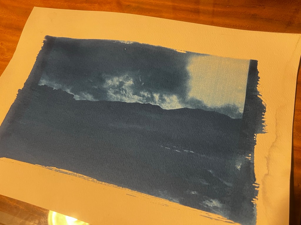 During the developing stage in the water, the image seemed to hold firm. After allowing it to dry, it is a stark contrast to the underexposed images from the UV lamp.