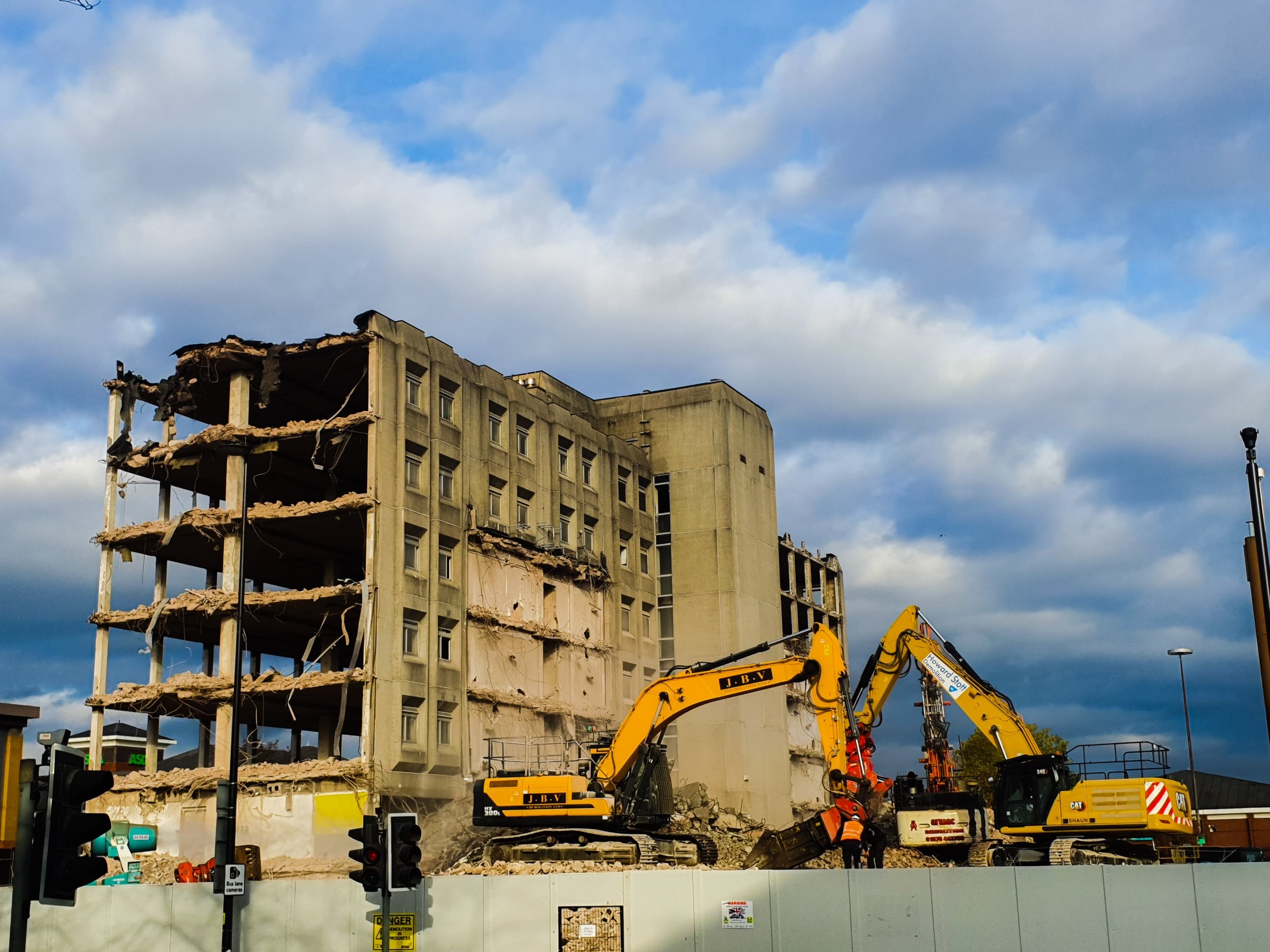 Since being drawn to the demolition site in Warrington, I have been keen to explore the parallels with our fragmented society. To begin with, I decided to recreate a section of the building in the original image.